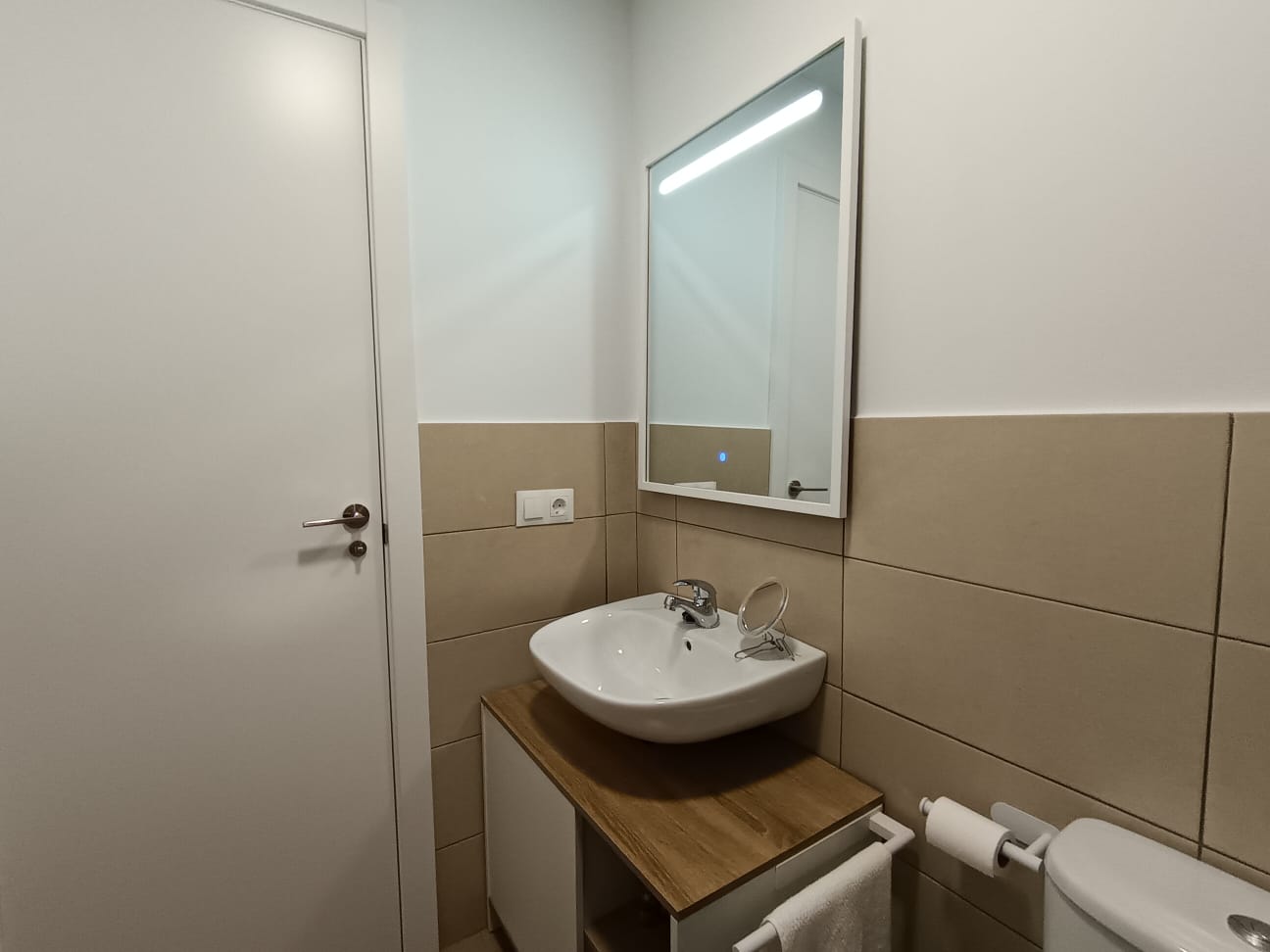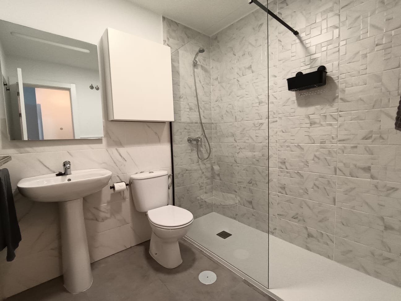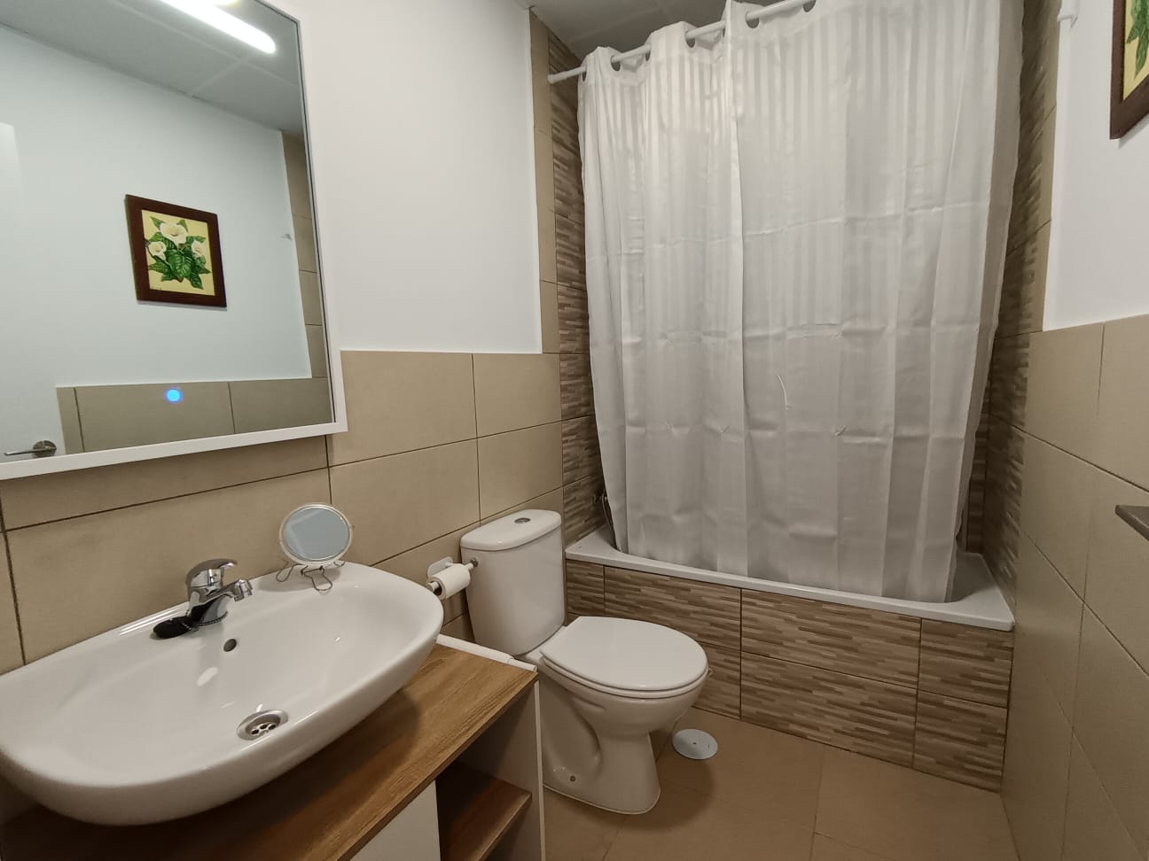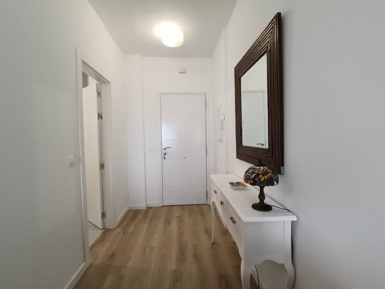 La vivienda se distribuye en recibidor, amplio y luminoso salón-comedor, pasillo con mueble armario que aporta gran capacidad de almacenaje, baño de cortesía exterior con bañera, y dos dormitorios, uno de ellos principal con baño en suite, equipado con placa de ducha y mampara a estrenar y una gran terraza de aproximadamente 20 mts² con preciosas vistas.
